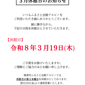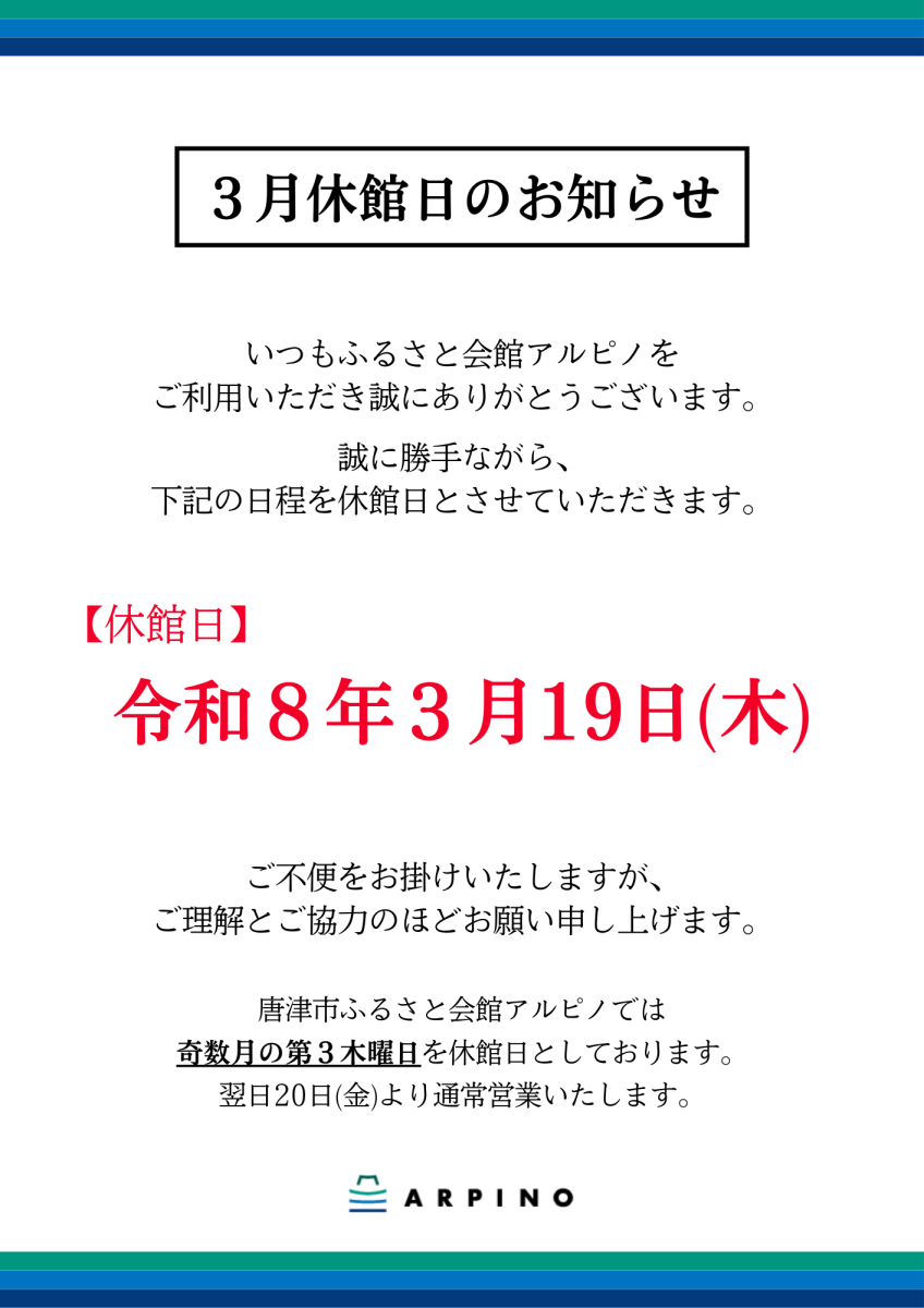 3月休館日のお知らせ